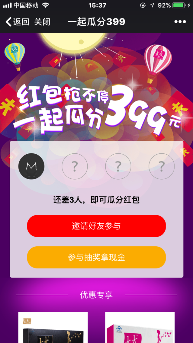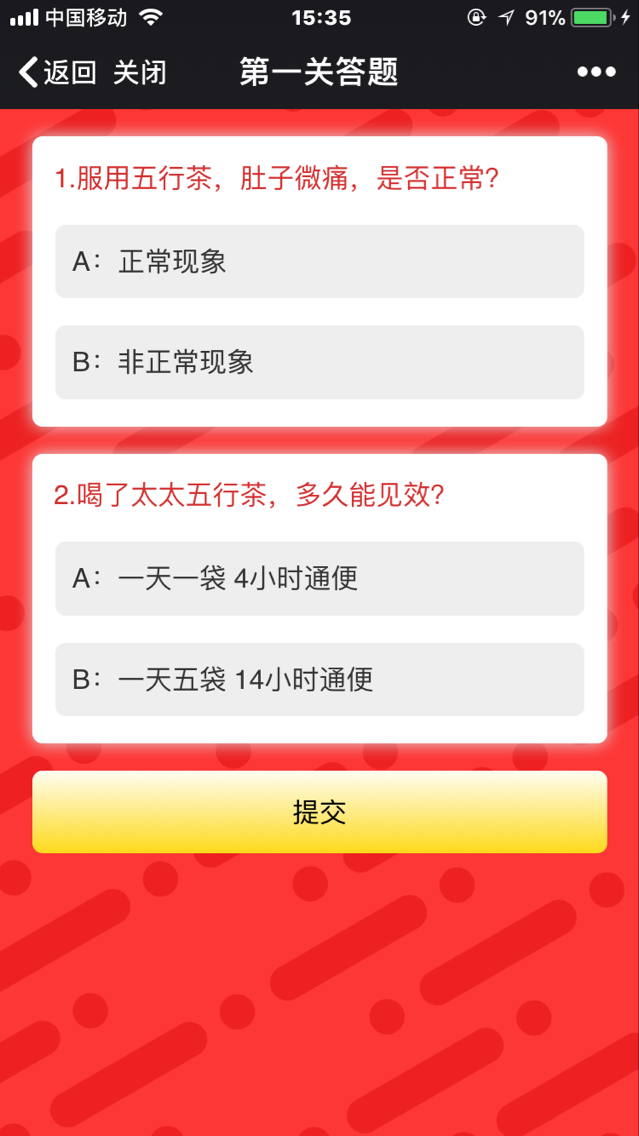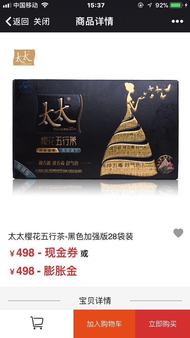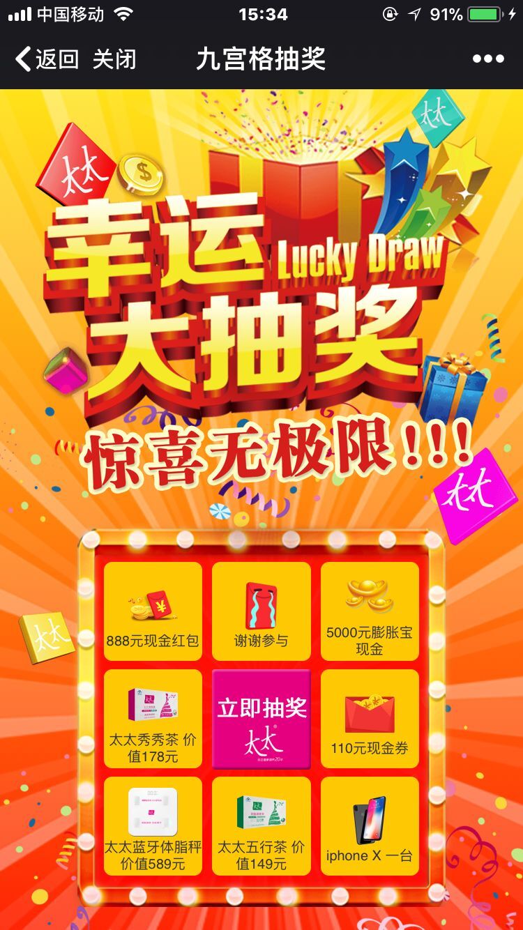公众号为太太减肥茶产品宣传、会员活动定制,功能包括:抽奖、微信返现、在线下单、现金抵用、积分抵用、答题等。