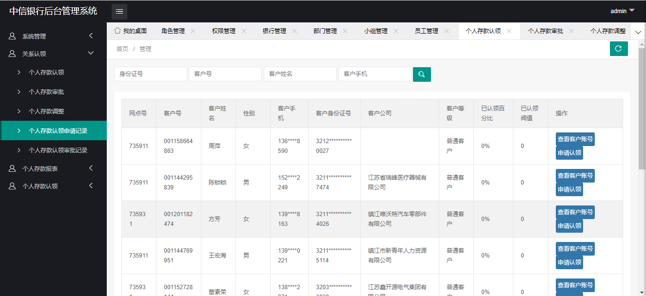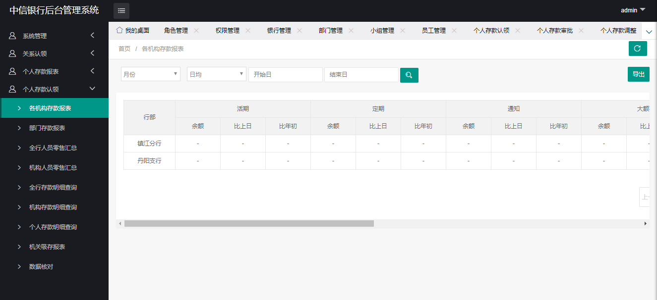 项目为中信银行镇江分行所定制开发,用于镇江分行及下属支行的业绩认领与绩效考核。