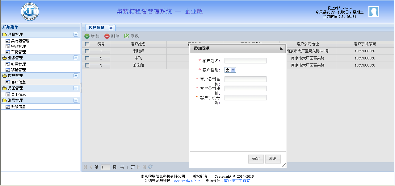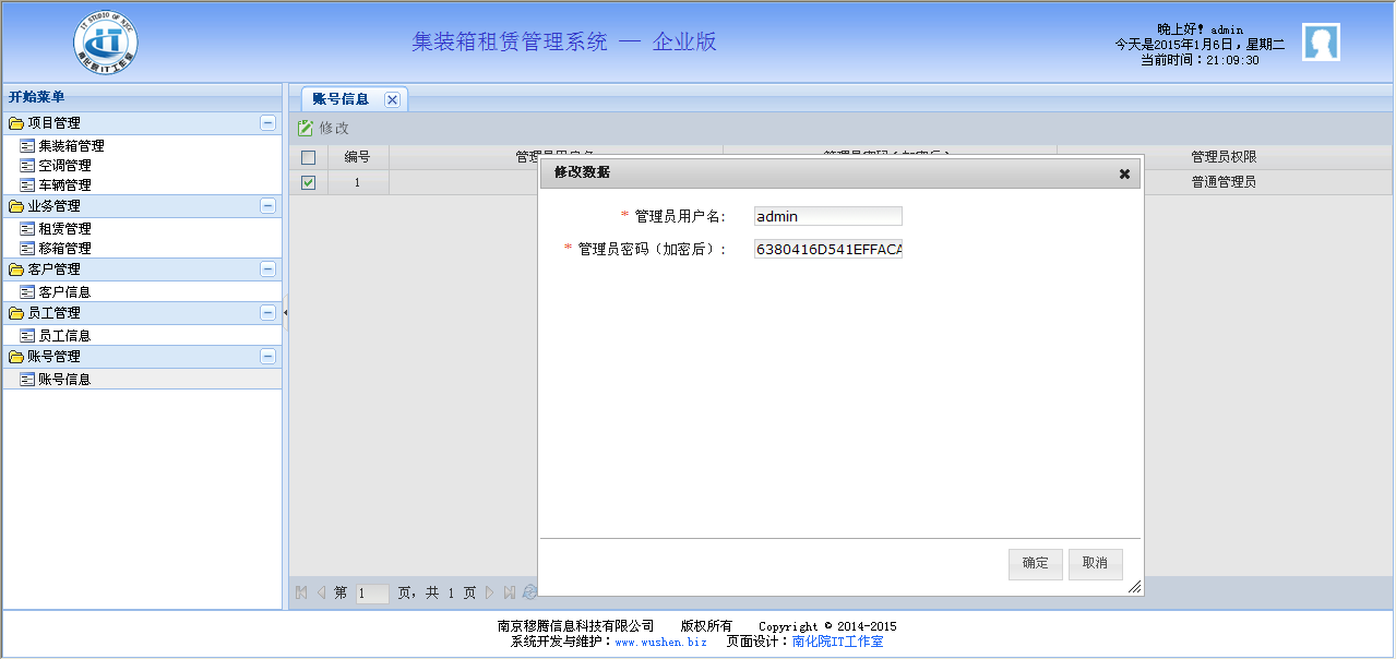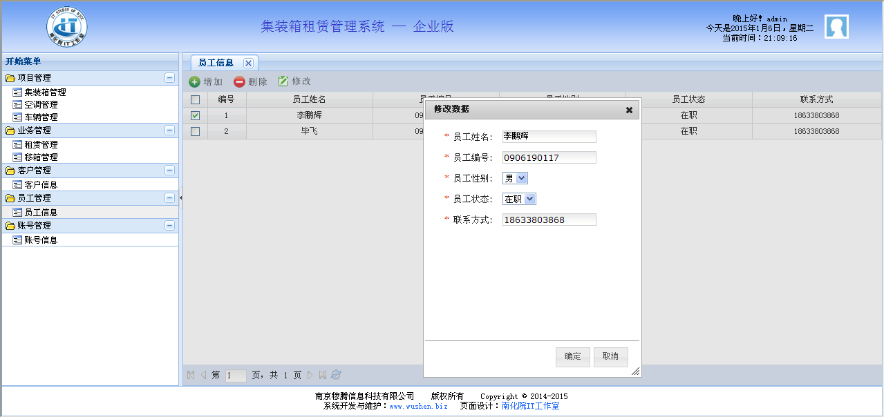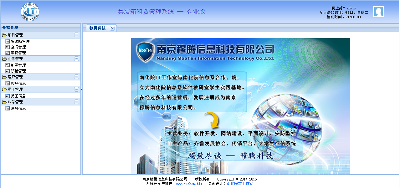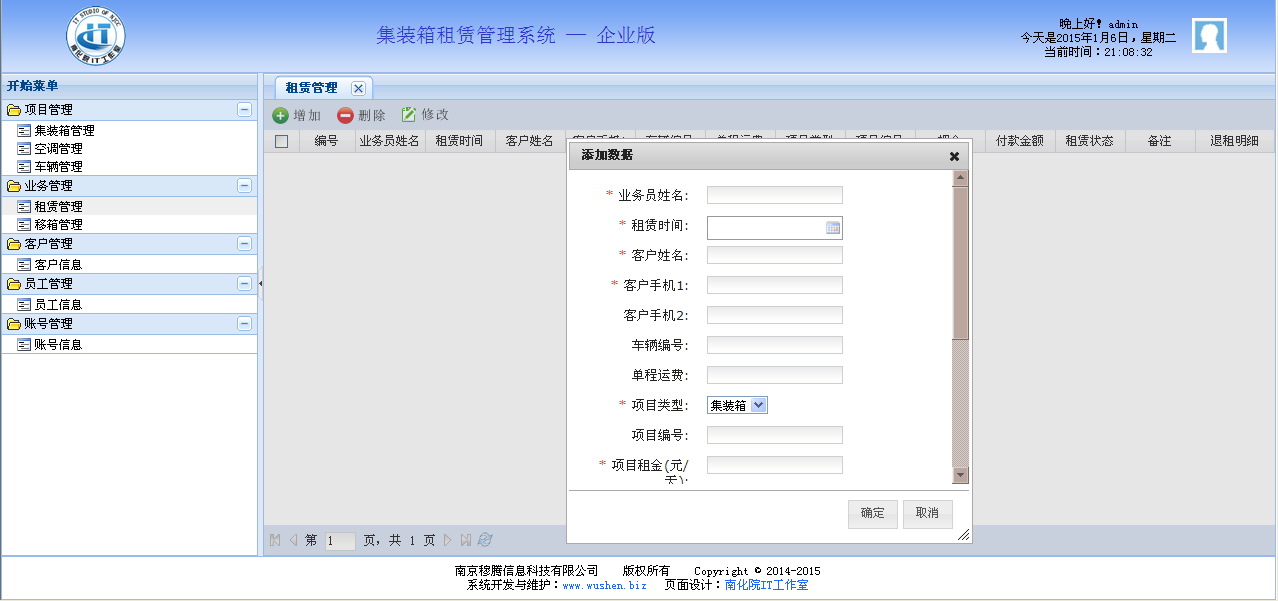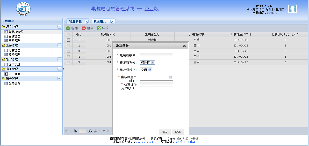 应用于集装箱租赁的管理系统,提供了集装箱管理、空调管理、车辆管理、业务管理、客户管理、员工管理、账号管理等功能。