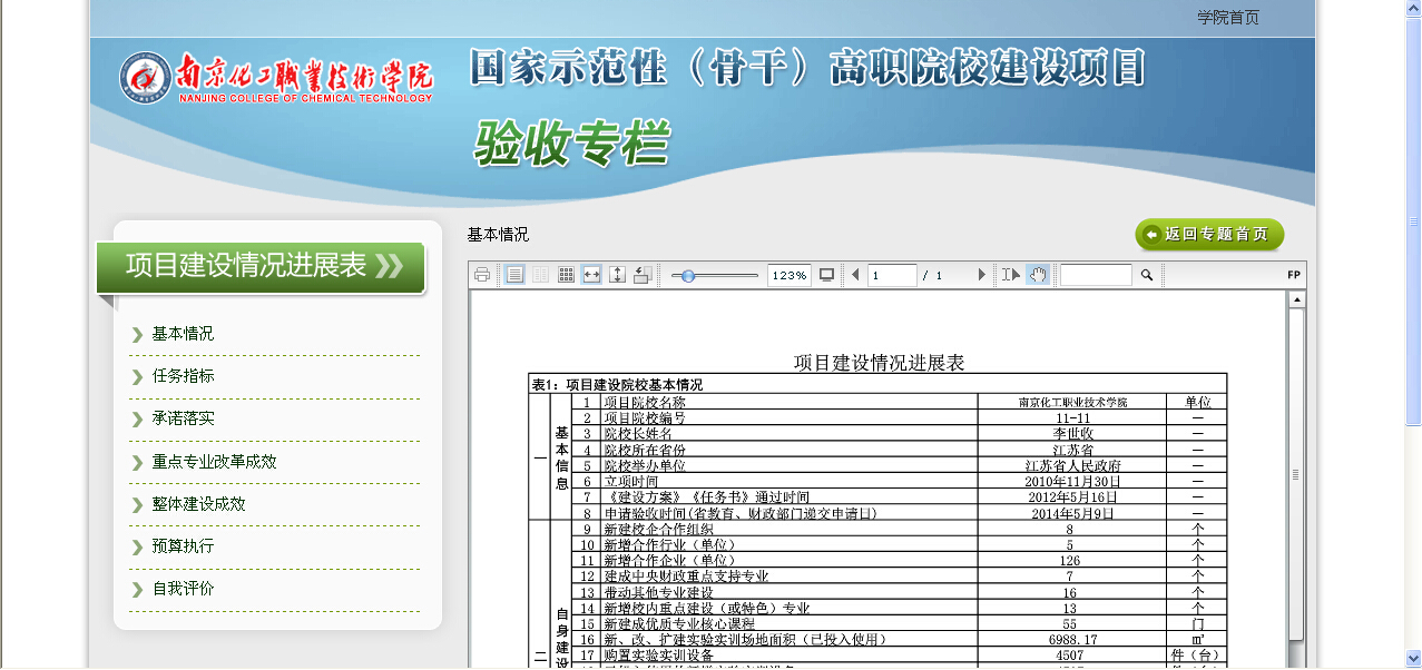 网站为专家组展示了南京化工职业技术学院的成果,为学院骨干院校验收工作的核心网站。