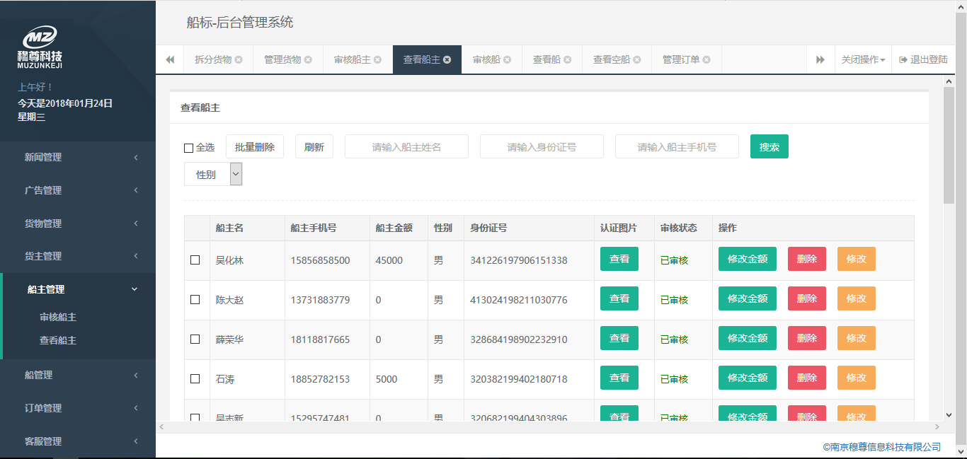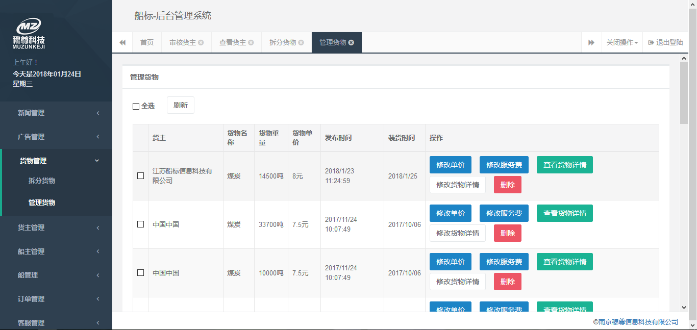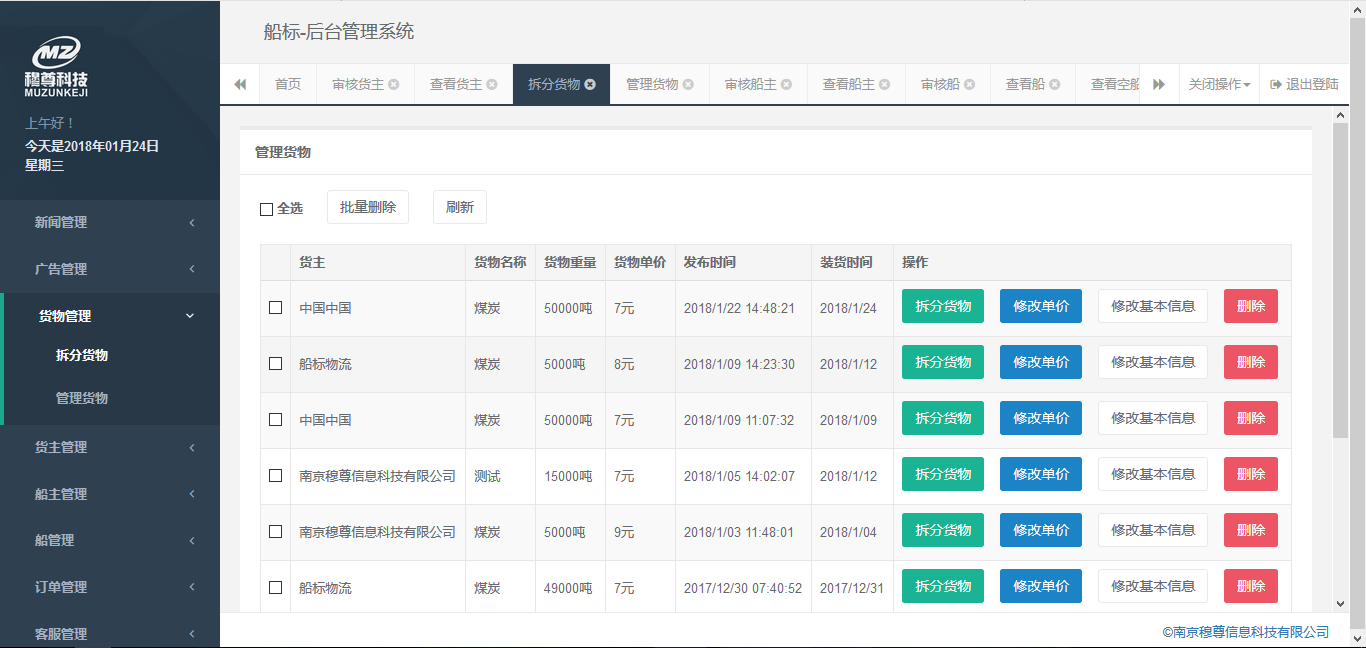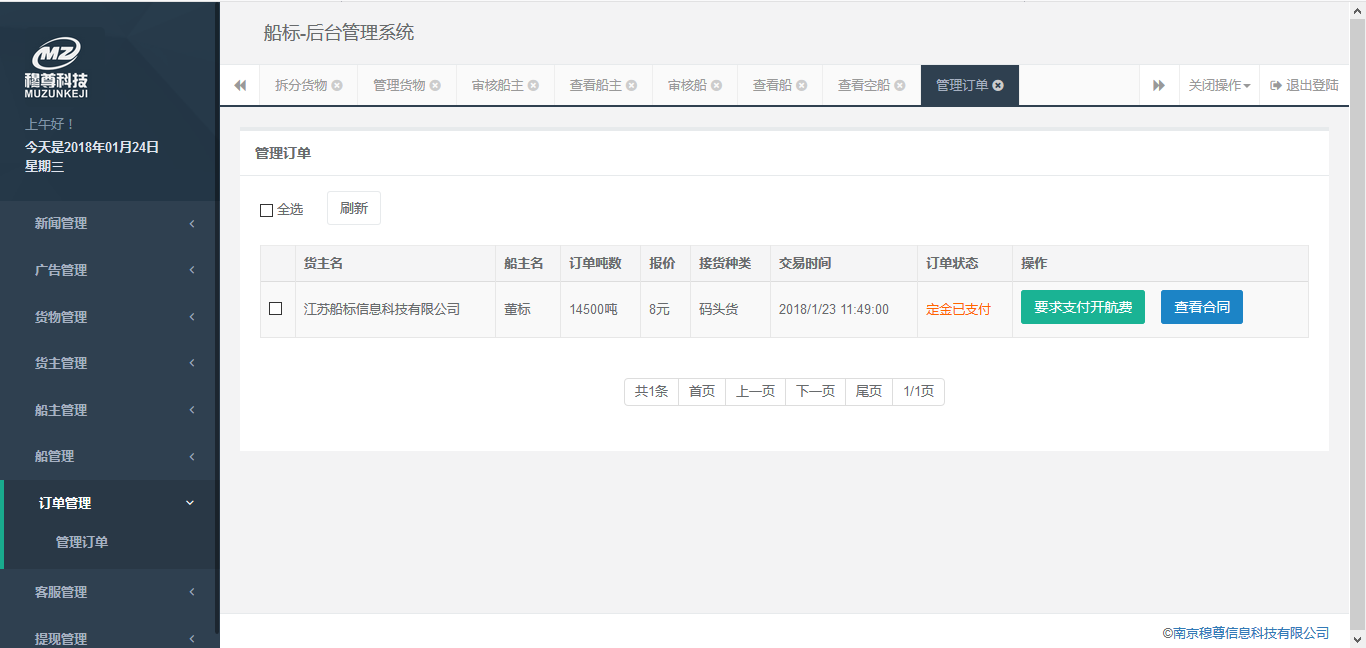 APP分为船主、货主两种角色。船主发布船只、货主发布货源后,船主可对符合自己船只载重的所有货物进行报价,货主选择一个船主进行在线签约,签约过程将组建一个由客服人员、船主、货主三人组成的临时群聊。