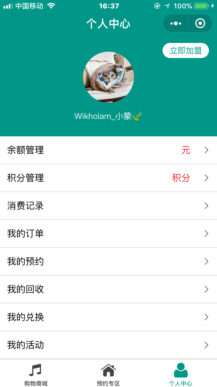 小程序为客户提供了:在线商城、预约回收、预约服务、在线投票、积分兑换、参与活动等功能。