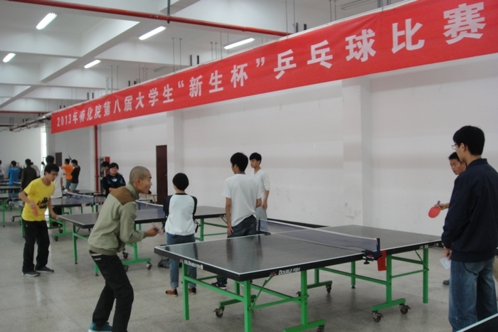 为了丰富大一新生的业余生活,增强学生的体质,培养学生团结合作精神,由体育工作部主办、乒乓球俱乐部承办、各系学生会协办的2013年南化院第八届“新生杯”乒乓球院队选拔赛于10月19日上午8点半在体育馆拉开了帷幕。本次比赛参加的对象是大一新生,共有一百二十名选手报名加。